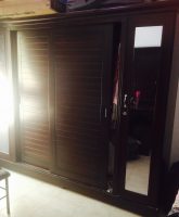 Queen size large bed with high quality mattress , 2 side tables, dressing table with stool and sliding doors double wardrobe all for 180kd. Used less than one year, new furniture. Bargain.