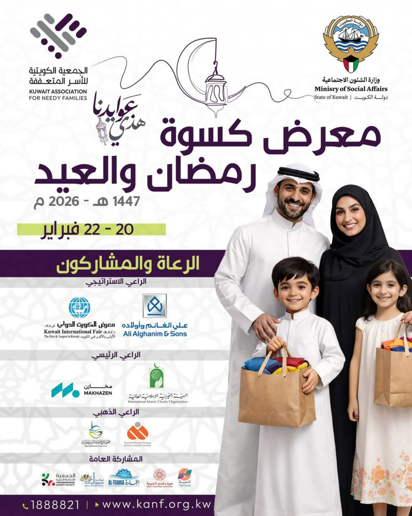 Under the patronage of Dr. Khaled Amer Al-Ajmi, Undersecretary of the Ministry of Social Affairs, the Kuwaiti Association for Needy Families is organizing the Ramadan & Eid Clothing Exhibition, with the support and participation of several sponsoring and supporting entities, as part of strengthening community engagement and promoting the values of humanitarian solidarity.
