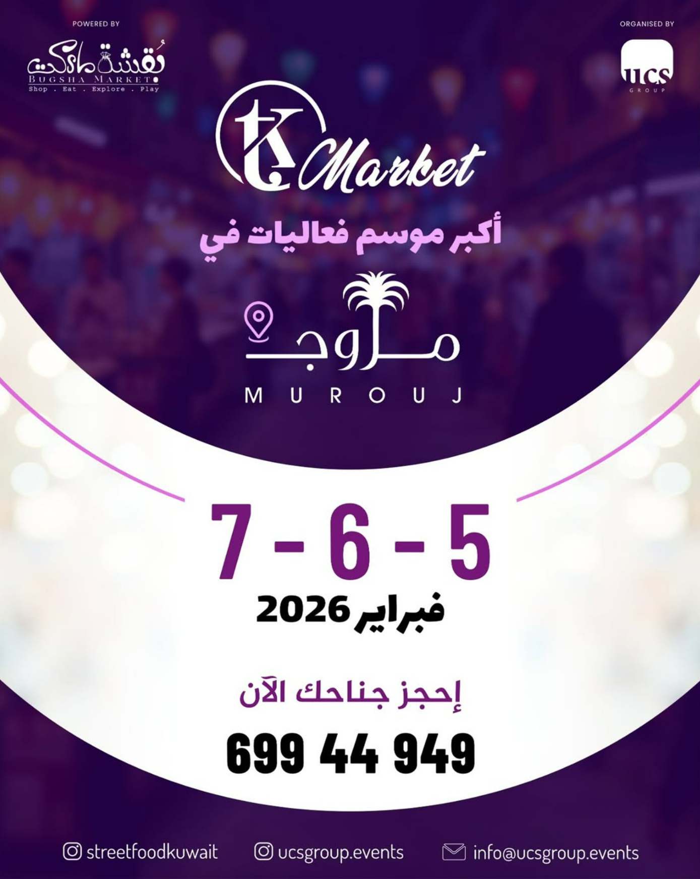 Event Type Market,ShoppingT Market in Murouj2026thu05feb(feb 5)10:00 pmsat07(feb 7)10:00 pmAl Murooj10:00 pm – 10:00 pm (7)