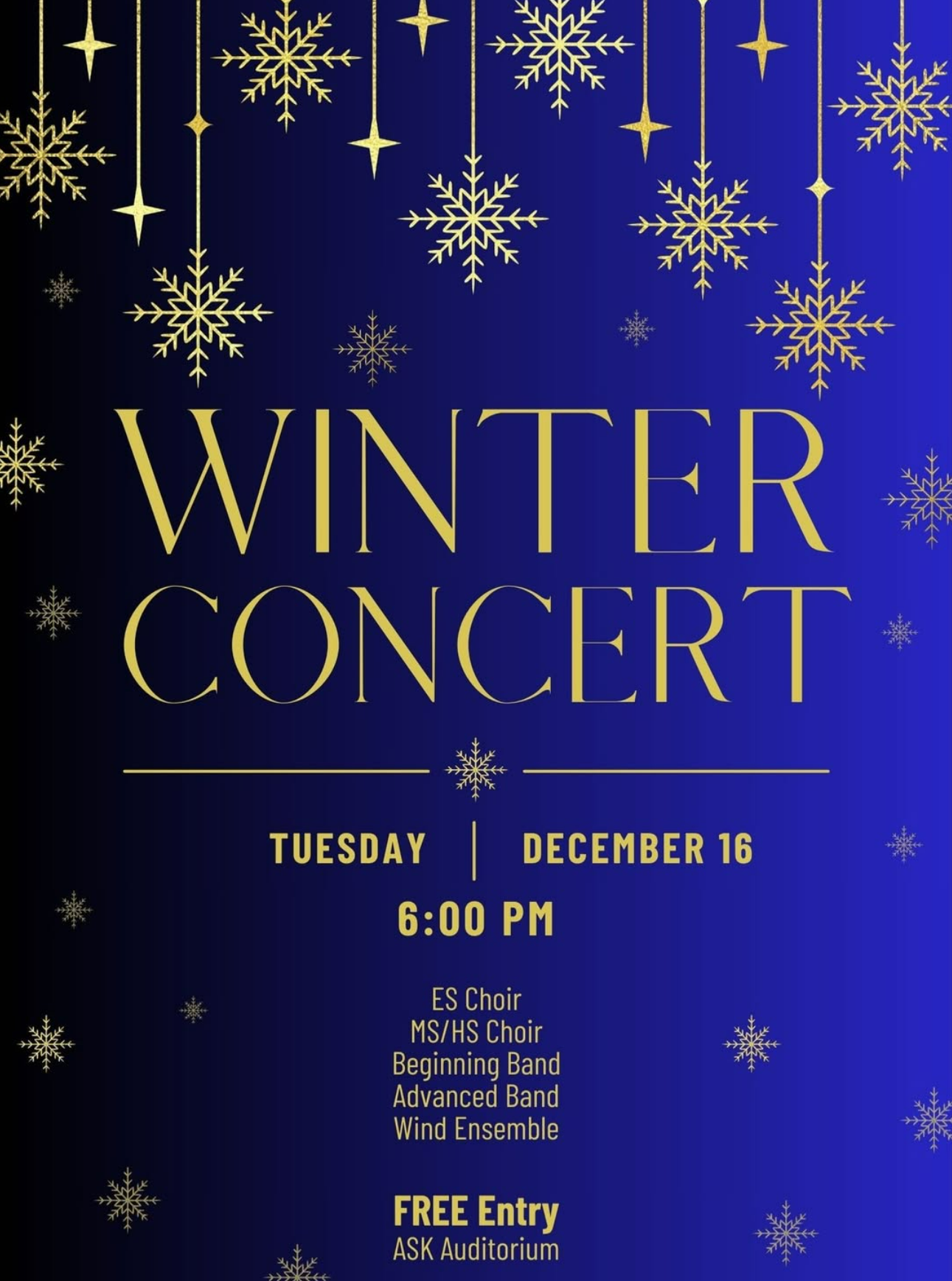 Performers: ES Choir, MS/HS Choir, Beginning Band, Advanced Band, Wind Ensemble