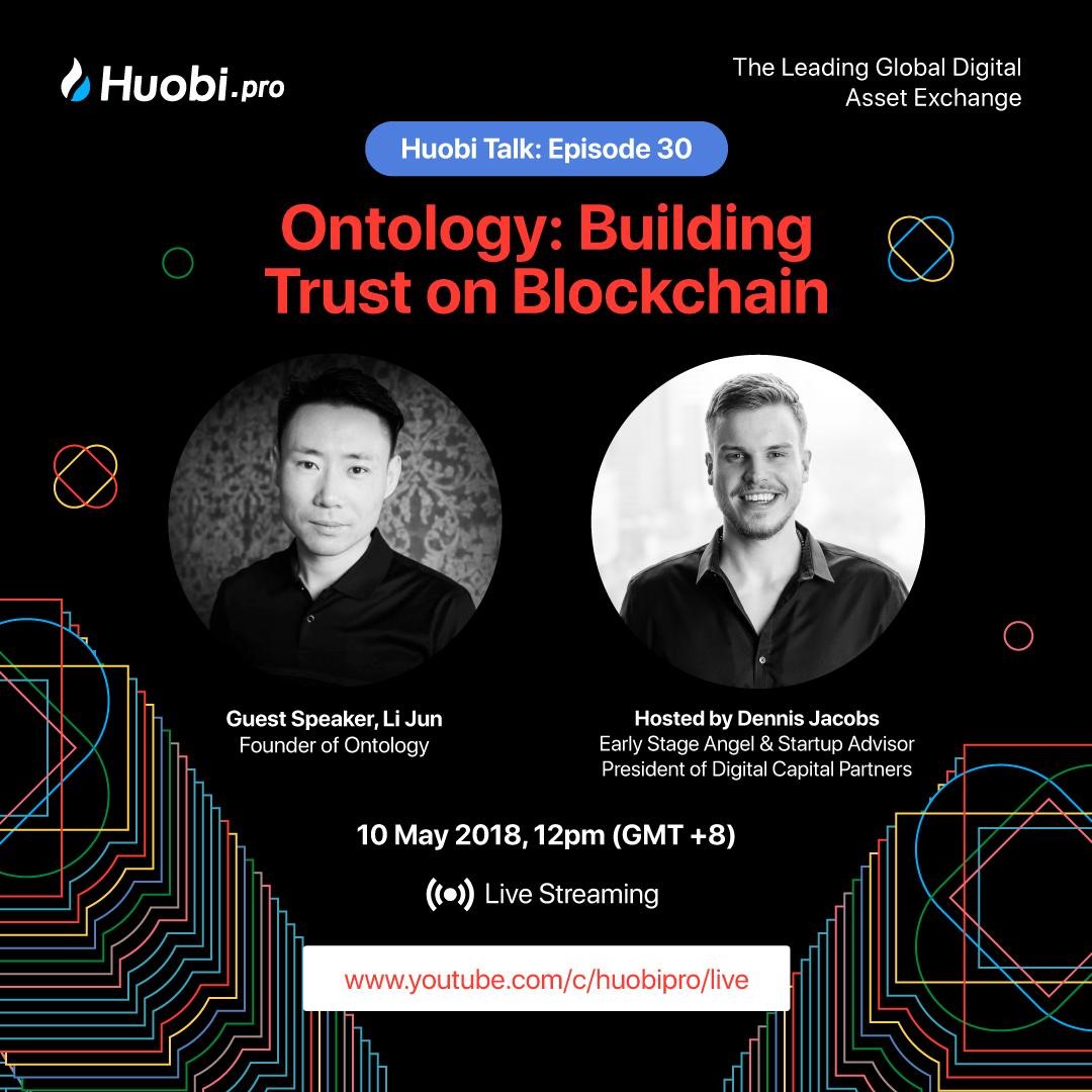 This week, Episode 30, Huobi Talk will be featuring Li Jun, founder of Ontology Network. In the show Mr. Li Jun will be sharing more about Ontology and its goal to build trust in a trustless system. The viewers will be getting a chance to ask him questions more about Ontology and he will be sharing his views about it