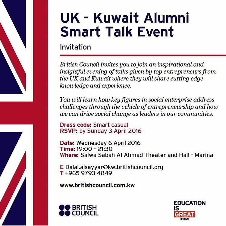 British Council invites you to join top speakers from the UK to share cutting edge knowledge and inspire the next generation of Gulf leaders. Event is on April 6 at Salwa Al Sabah Hall in Marina. Invitation is free and open to all.